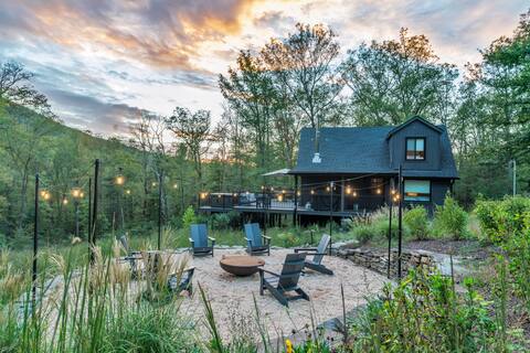 Cozy Designer Cabin with Hot Tub, Fire Pit, Grill