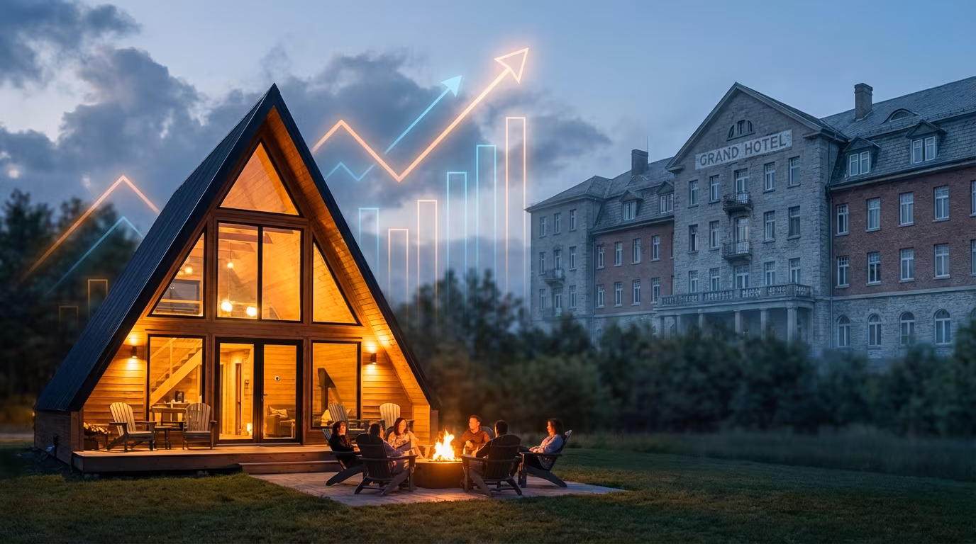 Economy and select-service hotels face the steepest declines. RevPAR in lower-tier segments remains flat to negative while upper-tier hotels show signs of recovery. The demand shift hits hardest in leisure markets where STRs offer family-sized accommodations that hotels cannot match.